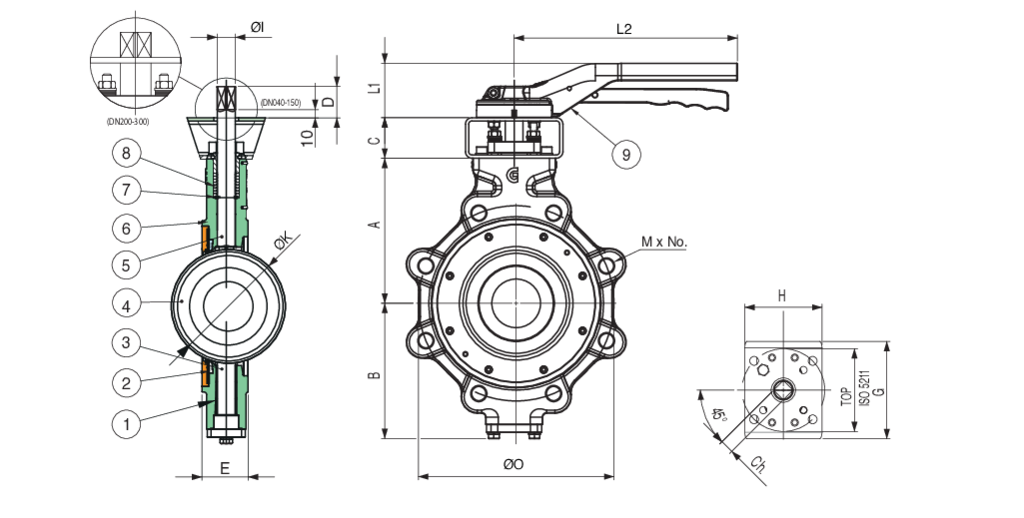 | SIZE | A | B | C | D | E | G | H | ØI | Ch | ØK | L1 | L2 | TOP | A150 (ØD) | A150 (M) | A150 (No.) | Cv | Weight (Lbs) | Break Torque (Nm) RTFE SEAT | Break Torque (Nm) INCONEL 625/FIRE SAFE SEAT |